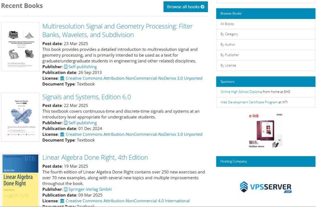 提供商业、工程、IT 等学习类电子书。